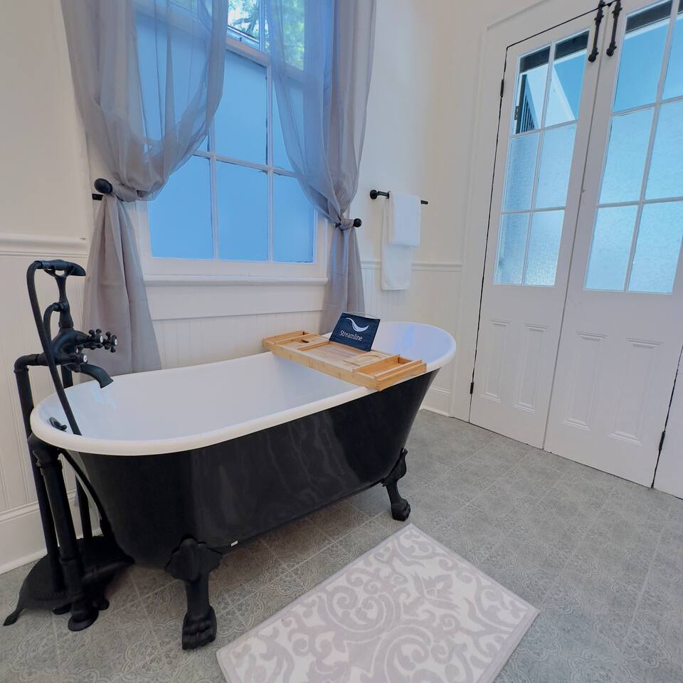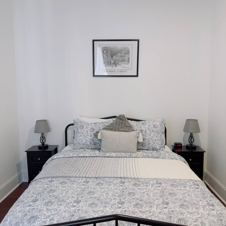 THE PLACE: A Historic Gem in the Heart of New Orleans Our property boasts an exceptional location in a traditional neighborhood, so central and accessible that many of our guests describe it as the perfect spot to explore one of the world’s most iconic cities. Built in 1917 and renovated in 2022, this home preserves the historic charm of New Orleans while blending it seamlessly with modern comforts. With 12-foot-high ceilings, stunning hardwood floors, elegant chandeliers, and thoughtfully designed lighting, every corner exudes magic. The atmosphere is enhanced by crown molding along the walls and artwork that tells the story of the culture, tradition, and architecture that make this city unique. Together, these details create a cozy space full of character and warmth. Our privileged location allows most of our guests to move around comfortably on foot, enjoying close proximity to the best cultural, gastronomic, and entertainment spots New Orleans has to offer. A place that combines history, style, and comfort, designed to provide you with an unforgettable experience. Nearby Places to Explore: ☆ French Quarter: Just a 7-minute walk away, the heart of New Orleans’ history and charm. ☆ Bourbon Street: 7 minutes on foot, famous for its vibrant nightlife and endless energy. ☆ Cafe du Monde: An 8-minute walk, a must-visit spot for their iconic beignets and coffee. ☆ The National WWII Museum: 1.8 miles, a world-class museum offering an unforgettable experience. ☆ Caesars Superdome: 1.2 miles, home to legendary sports and entertainment events. ☆ Jackson Square: 9 minutes walking, a vibrant hub of art, music, and culture. ☆ Frenchmen Street: 10 minutes walking, the go-to spot for incredible live jazz. All of this is within easy reach from our home, the perfect base to discover the best of New Orleans! ✦ YOUR PRIVATE SUITE ✦ Your private suite, featuring a beautifully designed bedroom and en-suite bathroom, offers the perfect combination of comfort, functionality, and elegance to ensure an exceptional stay. ☆ THE SUITE ☆ The bedroom is completely private and equipped with a smart lock, featuring a personalized code for your convenience. It is spacious and thoughtfully furnished with: ✦ A Queen-size bed with nightstands on both sides. ✦ A large walk-in closet to store your clothes and belongings. ✦ A dresser for extra storage. ✦ A Smart TV for your entertainment needs. ✦ A ceiling fan with adjustable speed settings. ✦ Configurable lighting to choose between warm or cool tones, tailored to your preferences. ☆ THE BATHROOM ☆ Your suite includes a spacious private bathroom that combines luxury and practicality. It features: ✦ An elegant double sink with a granite countertop for added sophistication. ✦ A modern glass-enclosed shower. ✦ A classic and beautiful clawfoot tub, perfect for relaxing after a long day. The bathroom is fully stocked with all the essentials: ✦ Body, hand, and face towels. ✦ High-quality shampoo, conditioner, and body wash. ✦ Cotton swabs and makeup remover pads for your personal care. Your private suite is a haven of comfort and luxury, thoughtfully designed to provide you with a relaxing and unforgettable experience. ★★ SHARED AREAS ★★ ◆◆ KITCHEN AREA ◆◆ The house features a spectacular kitchen, with countertops entirely made of marble. It is equipped with: • Dishwasher. • Modern microwave. • Toaster. • Large refrigerator with freezer and ice maker. • Spacious gas stove. • Coffee maker. • Glasses, mugs, and wine glasses. • Complete dinnerware set. • Kitchen utensils, including pots, pans, cutting boards, and more. • Basic essentials like salt, pepper, and oil. A practical, functional, and elegant space, perfect for preparing your favorite meals. ◆◆ DINING AREA ◆◆ We offer a spacious wooden dining table with seating for 7, featuring cushioned chairs for added comfort. The dining room boasts a classic and elegant design, illuminated by a modern chandelier that enhances the space and adds a touch of sophistication to the property. ◆◆ LIVING ROOM ◆◆ The living room is a harmonious blend of comfort and style, designed to be both functional and welcoming. With two luxurious leather sofas as the centerpiece and two individual armchairs complementing them, this space offers the perfect place to relax or socialize. Large windows fill the area with natural light, enhancing the warmth and spaciousness of the room. A Smart TV is elegantly placed above a fireplace, creating an ideal focal point for entertainment and cozy evenings. The space is completed with a classic wooden coffee table, adding a touch of sophistication, while a ceiling fan ensures a fresh and comfortable atmosphere. Every detail in this living room has been carefully chosen to create a space that perfectly combines elegance and comfort. ◆◆ SHARED BATHROOM ◆◆ The shared half-bathroom is designed to provide convenience and functionality for all guests in the house. Centrally located, it allows you to avoid the need to return to your room while enjoying the common areas. It’s also an excellent second option if your companion is using the main bathroom and you need immediate access. This practical space ensures a comfortable experience for all guests during their stay. ◆◆ LAUNDRY AREA ◆◆ We provide a washer and dryer for your convenience, so you can keep your clothes clean and fresh during your stay. Additionally, we supply everything you need, including detergent, fabric softener, and bleach, ensuring a hassle-free and comfortable experience. ◆◆ BACKYARD ◆◆ We offer a spacious garden with a covered area, thoughtfully furnished with two outdoor seating areas that can accommodate up to 8 people, two tables, and ceiling fans for your comfort. This serene and inviting space is perfect for enjoying a cup of coffee, engaging in conversation, or simply spending relaxing moments outdoors in a refreshin